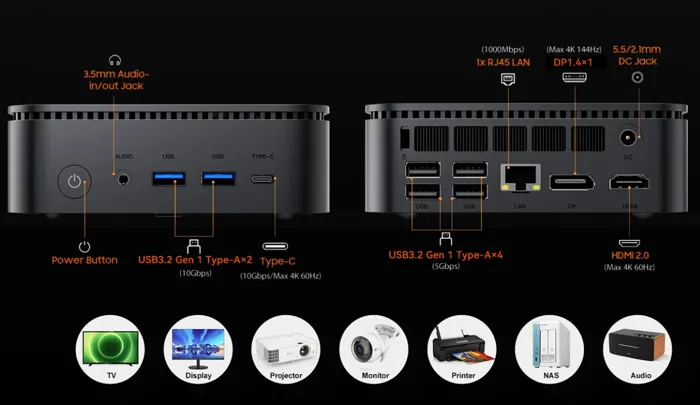 - Πλήρης συνδεσιμότητα με 7 USB θύρες, USB-C, HDMI 2.0, DisplayPort 1.4 και LAN 1GbE.