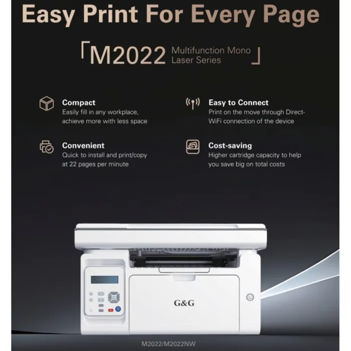 G&G Πολυμηχάνημα M2022NW Mono Laser A4 22ppm 1200dpi U-W 2YW