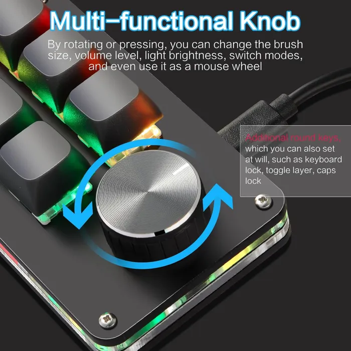 Φορητό πληκτρολόγιο με 6 πλήκτρα προγραμματιζόμενα σε οποιονδήποτε συνδυασμό από το κανονικό πληκτρολόγιο | Υποστήριξη έως 16 macros με έως 500 εντολές ανά πλήκτρο για office, CAD, AE, PR, PS, gaming και programming | 6 διαφορετικά προφίλ χρήστη αποθηκευμένα σε ενσωματωμένη μνήμη, δεν απαιτείται εκ νέου ρύθμιση σε άλλον υπολογιστή | Ρύθμιση μέσω web driver (Windows 7/8/10/11, Mac OS) ή λογισμικού (Windows 10/11, Mac OS) | RGB φωτισμός με προσαρμογή | Hot-swappable design για εύκολη αντικατάσταση μηχανικών διακοπτών | Συμβατό με ταυτόχρονη χρήση με πλήρες πληκτρολόγιο 104 πλήκτρων (plug & play) |