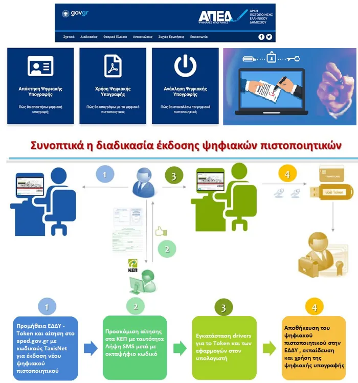 Αν θέλετε να αποκτήσετε ψηφιακά πιστοποιητικά θα πρέπει να ακολουθήσετε τα βήματα όπως περιγράφονται στον ιστότοπο της ΑΠΕΔ (Αρχή Πιστοποίησης Ελληνικού Δημοσίου).