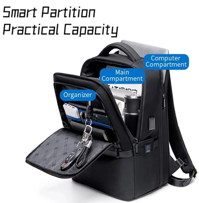 Υλικό: Πολυεστέρας με αδιαβροχοποίηση | Χωρητικότητα 27L | Θήκη για Laptop έως 15.6" & Tablet έως 10" | Θύρες USB & 3.5mm για φόρτιση/ακουστικά | Πολλές εσωτερικές & εξωτερικές θήκες | Πτυσσόμενη κατασκευή για αυξημένη χωρητικότητα | Εργονομικοί ιμάντες ώμου & χειρολαβή | Υποδοχή για βαλίτσα, πλαϊνές θήκες για μπουκάλι/ομπρέλα | Αποσπώμενο μπρελόκ για κλειδιά | Διαστάσεις 44x31x20cm | Χρώμα: Μαύρο