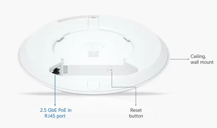 Υποστήριξη WiFi 7 (802.11be) Κάλυψη 115 τ.μ. WiFi 7 Access Point: Κυκλική σχεδίαση O171.5 x 33 mm, κάλυψη έως 115m², υποστηρίζει 200+ clients, uplink 2.5 GbE, τοποθέτηση σε οροφή/τοίχο (βάση Lite Mount). Τροφοδοσία PoE, κατανάλωση έως 13W. Απόδοση: 5GHz 4.3Gbps (2x2 MU-MIMO), 2.4GHz 688Mbps (2x2 MU-MIMO), κέρδος κεραίας 5GHz 5 dBi, 2.4GHz 4 dBi, ισχύς εκπομπής 24/23 dBm, 8 BSSIDs ανά radio. Συμβατό με WiFi 7/6/5/4, υποστηρίζει WiFi meshing, band steering, fast roaming (802.11r), RRM, Passpoint, captive portal με πολλαπλές μεθόδους αυθεντικοποίησης, PPSK, WiFi speed limiting, isolation, schedules, dynamic VLAN, RadSec. Υλικό κατασκευής UV-stabilized polycarbonate & γαλβανισμένος χάλυβας, βάρος 313g, λειτουργία -30 έως 40°C, υγρασία 5–95%. Διαχείριση μέσω UniFi Network (v9.0.114+) & mobile app. Συσκευασία: Access Point, βάση τοίχου, αλφάδι, kit τοποθέτησης, οδηγίες.